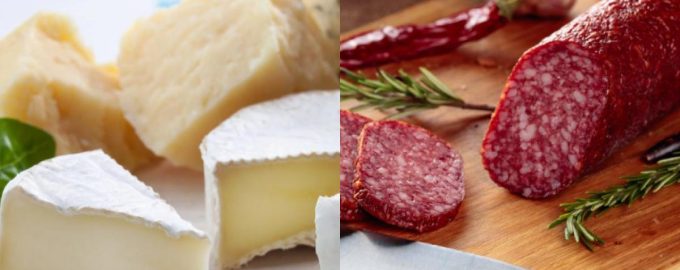 Zoznam zahŕňa syry a salámy.